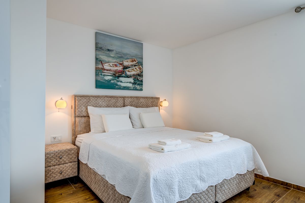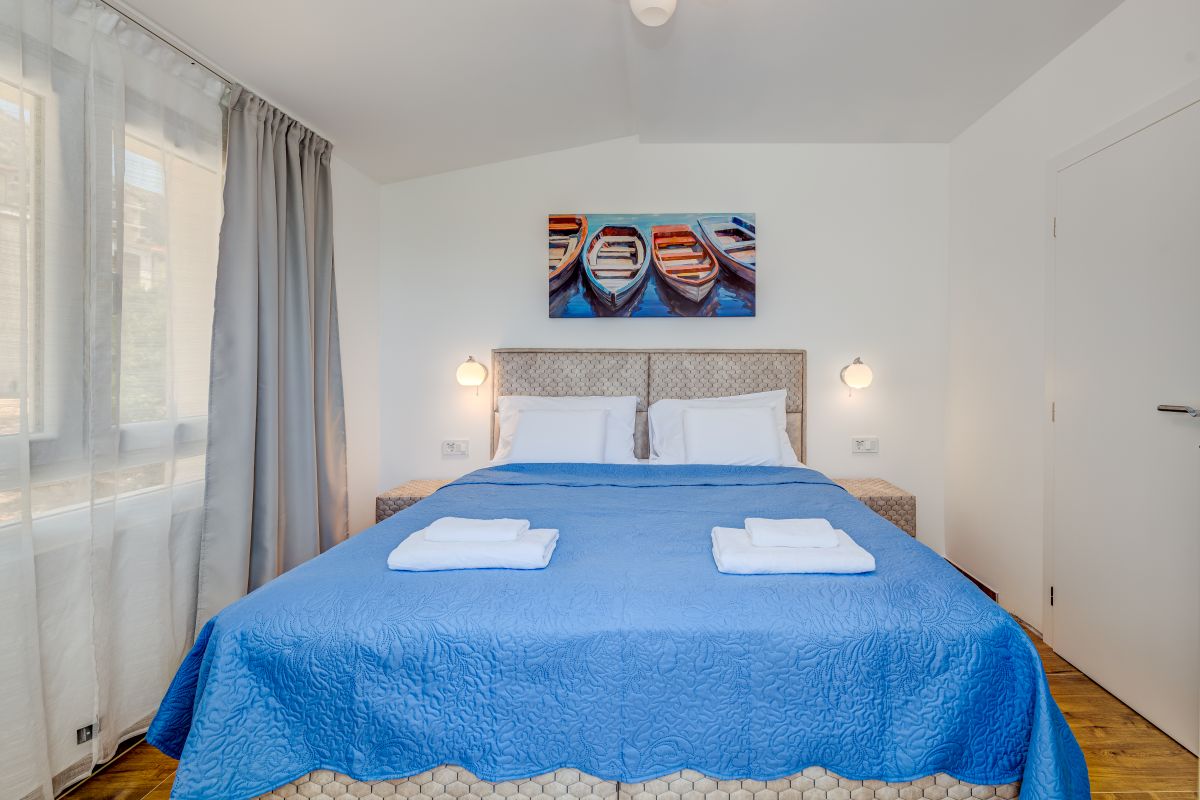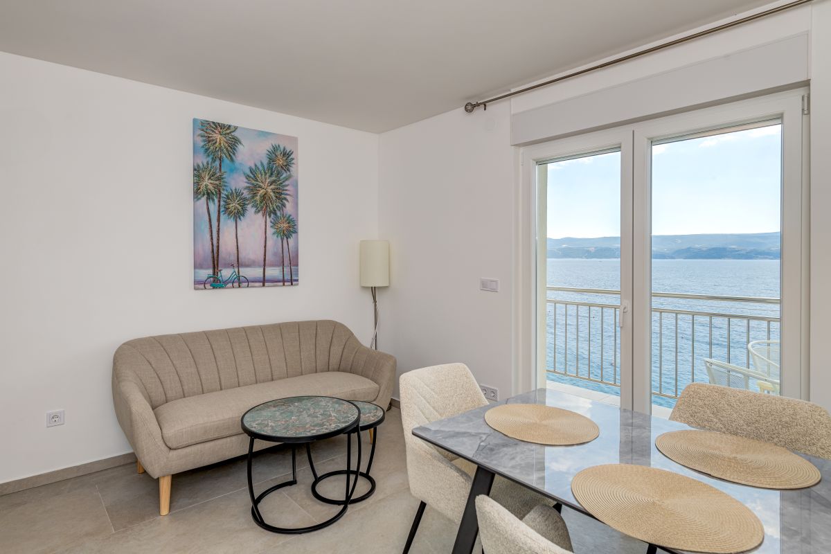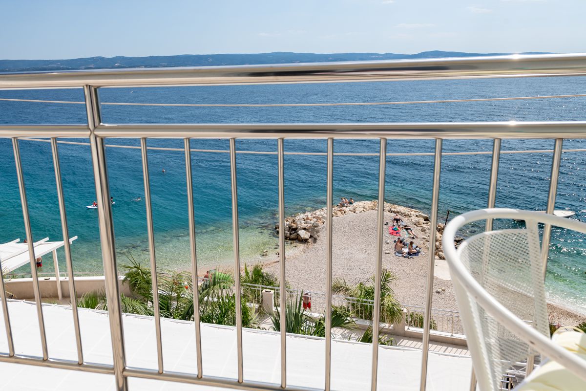 The renovated apartments meet the requirements even for a more demanding clientele. Each bedroom has its own bathroom, toilet, air conditioning, a balcony or at least a window with a sea view. Two terraces are available for guests. One has a seating area with a grill, and the second large terrace is located directly above the beach and is equipped with sun loungers. The standard equipment of each apartment also includes a fridge with a freezer, oven, coffee maker, kettle, toaster, microwave oven, hairdryer, iron, etc.