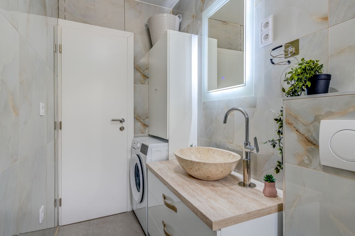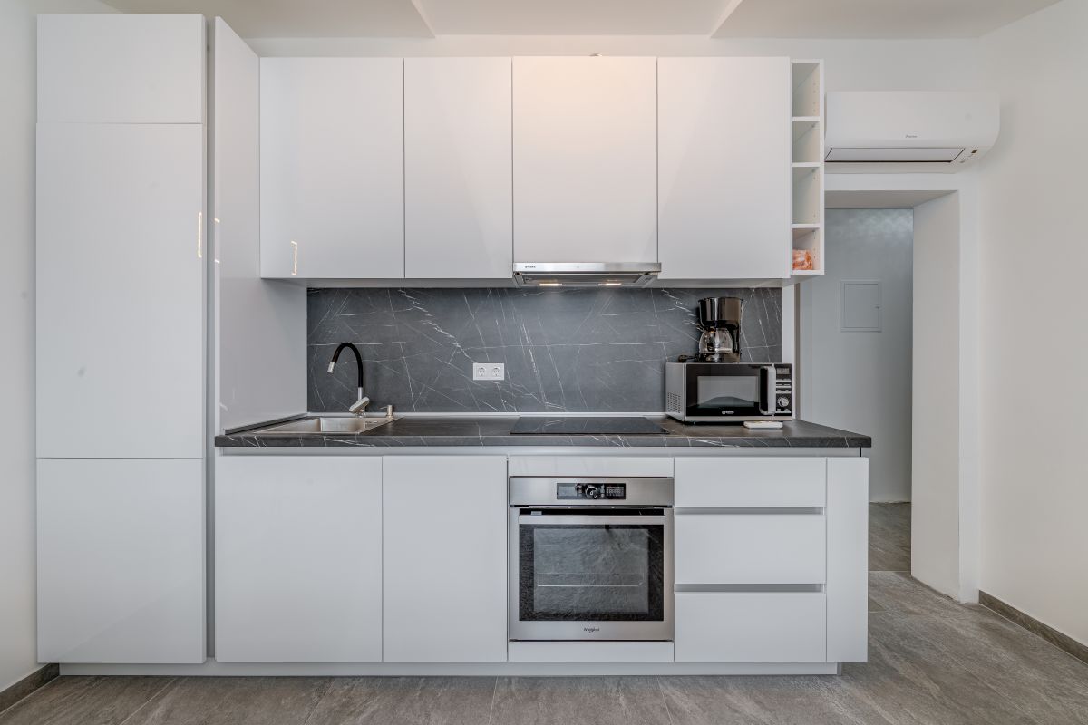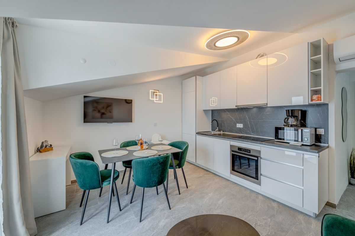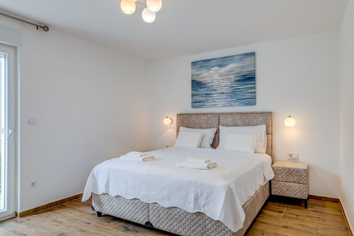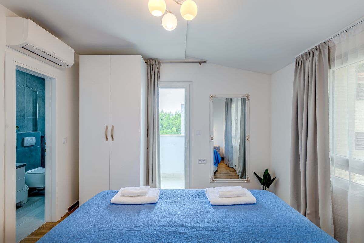 The renovated apartments meet the requirements even for a more demanding clientele. Each bedroom has its own bathroom, toilet, air conditioning, a balcony or at least a window with a sea view. Two terraces are available for guests. One has a seating area with a grill, and the second large terrace is located directly above the beach and is equipped with sun loungers. The standard equipment of each apartment also includes a fridge with a freezer, oven, coffee maker, kettle, toaster, microwave oven, hairdryer, iron, etc.