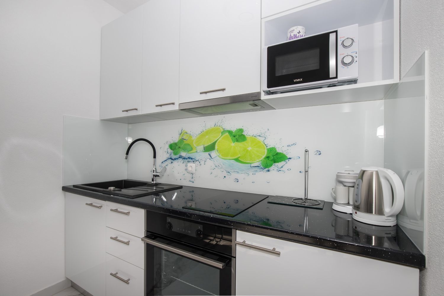 opremljenom kuhinjom (posuđe, pećnica, kuhalo za vodu, aparat za kavu...) i