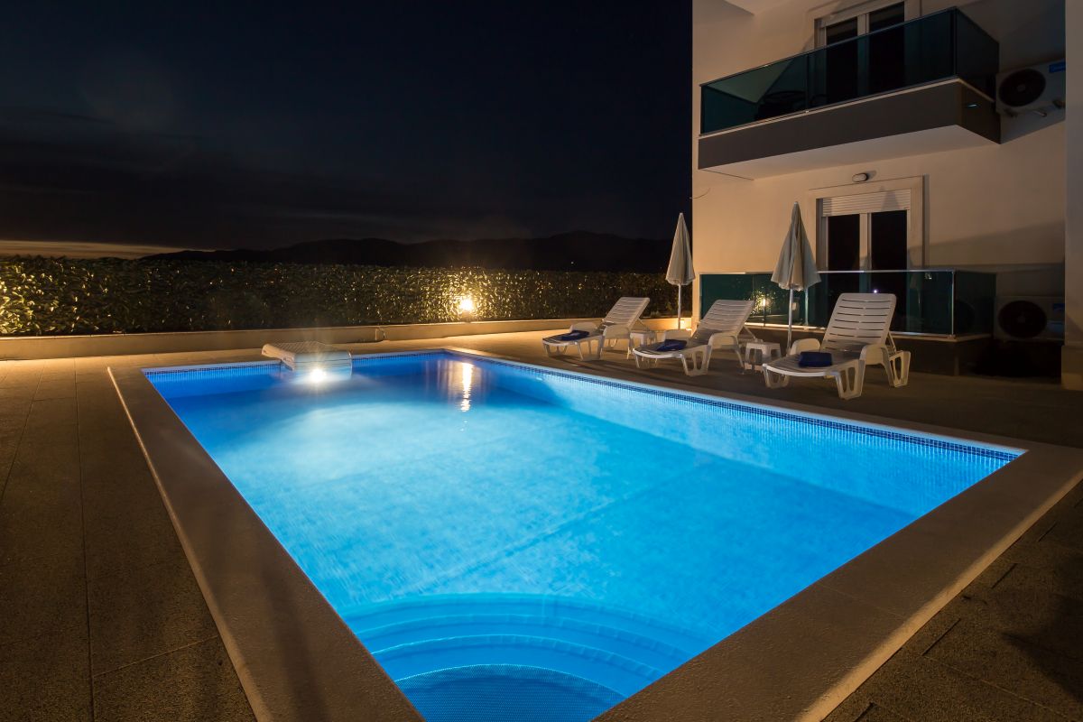 balkona s pogledom na more i bazen. Apartmani su klimatizirani i nude besplatni