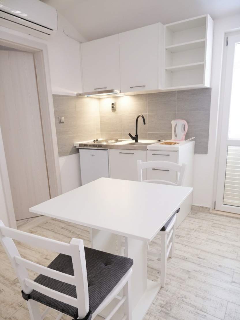 - štúdio s manželskou posteľou a rozkladacou pohovkou pre 2 osoby, kuchynský